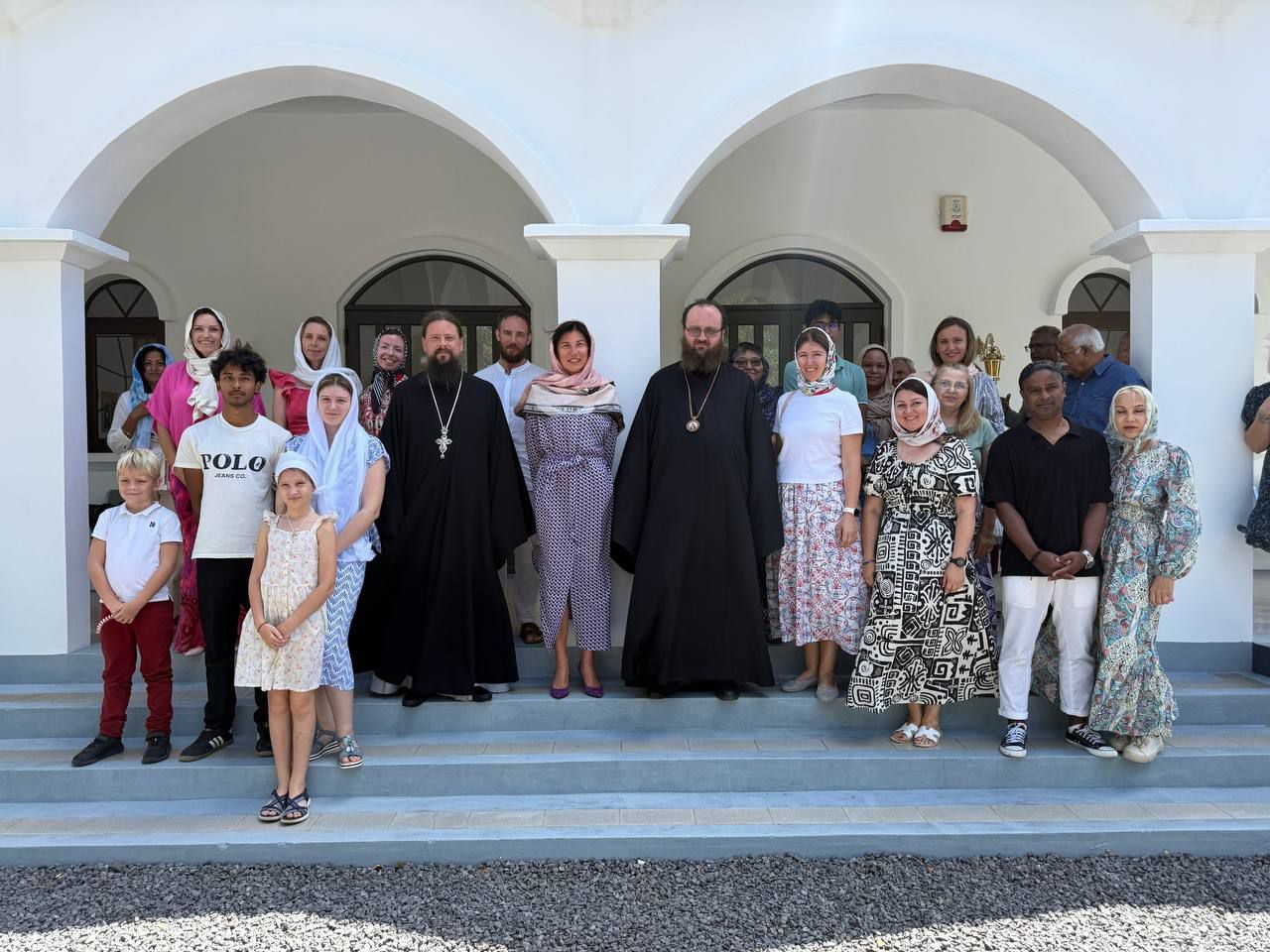 После богослужения Патриарха Феофила, иерархов Иерусалимской Церкви и почетных гостей принял игумен монастыря святого Иоанна Предтечи архимандрит Матфей (Иерусалимский Патриархат).