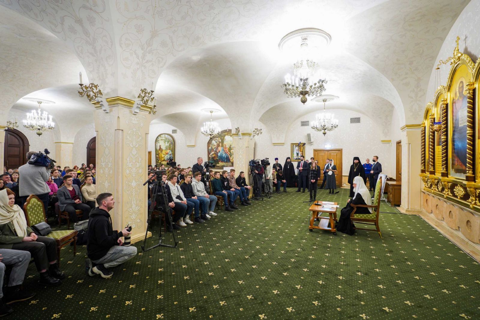 26 февраля 2023 года в Патриаршем зале кафедрального соборного Храма Христа Спасителя в Москве состоялась встреча Святейшего Патриарха Московского и всея Руси Кирилла с юными спортсменами Донбасса