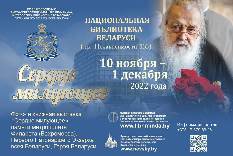 10 ноября 2022 года в Национальной библиотеке Республики Беларусь состоялось открытие выставки «Сердце милующее» памяти героя Беларуси, первого Патриаршего экзарха всея Беларуси митрополита Филарета (Вахромеева) (1935-2021).