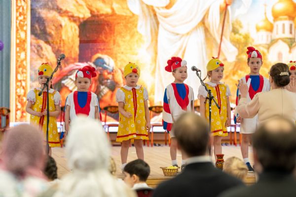 Концерт открылся выступлением младшей группы – дети подготовили пасхальные песни и стихи. Ребята постарше показали сказочный спектакль, выступили с танцами и песнями, прославляя Воскресшего Христа. В зале царила теплая семейная атмосфера, через свои искренние выступления дети смогли передать радостное настроение и взрослым.