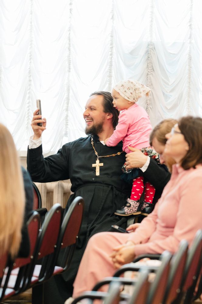 «Господь сказал также: пустите детей приходить ко Мне. Да, ребенок только тогда полноценно воспитывается, когда приобщается к любви Божией. А любовь Божия открывается детям через маму, а чтобы передать эту любовь ребенку, матери надо учиться молиться и ребенка научить быть верным Богу и в молитве всегда пребывать. Единство матери и ребенка сокрыто в молитве, обращенной ко Господу. А обязанность отца в семье – воспитывать ребенка в страхе Божием и в труде. И все – и родители, и дети – должны научиться бороться с грехами, чтобы душа не болела, чтобы сердце было мирным и спокойным. А в этом тоже помогает молитва и искренняя исповедь», – отметил владыка.