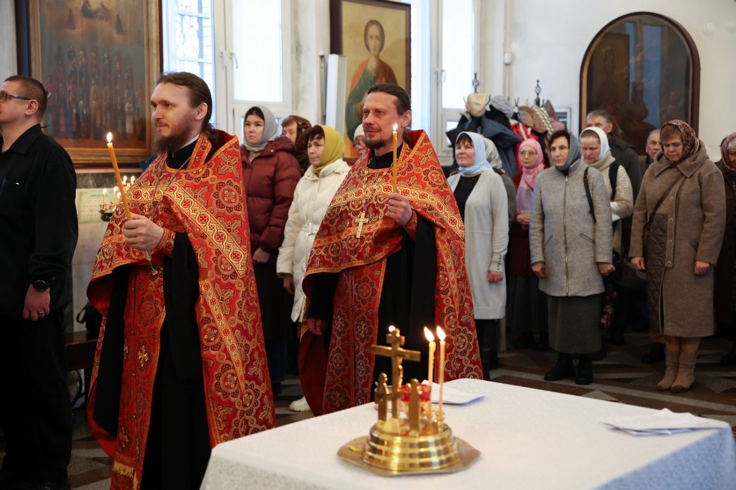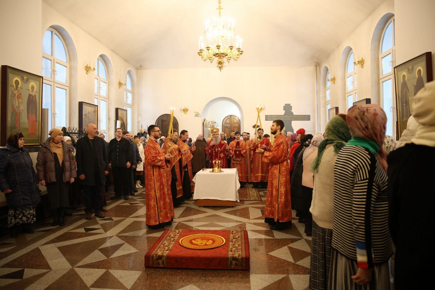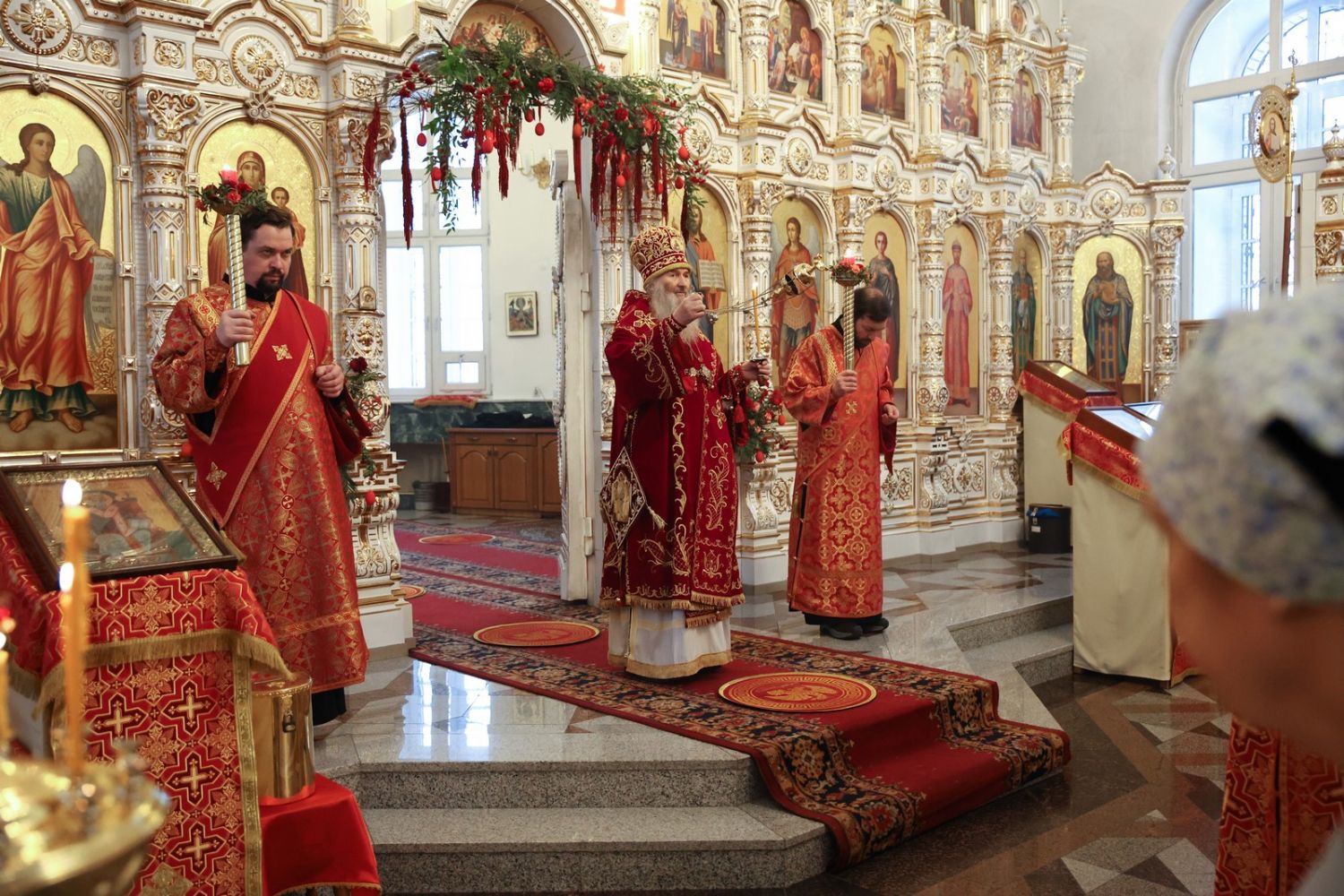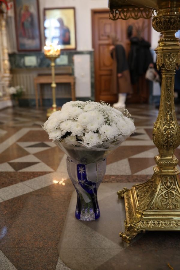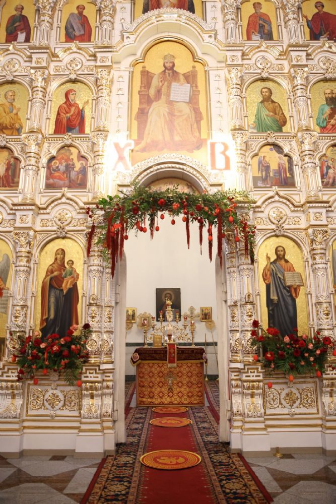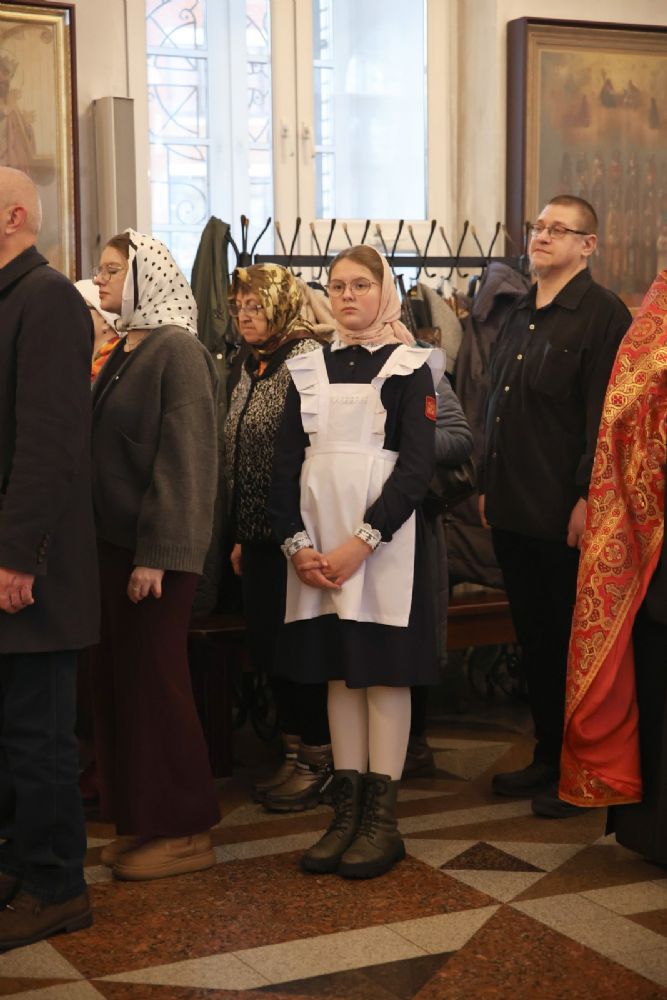 Архипастырю сослужили настоятель собора иерей Андрей Кочаков, клирики собора иерей Леонид Вылекжанин, иерей Димитрий Лукьянов и диакон Алексий Кузнецов, а также клирик Благовещенского кафедрального собора диакон Артемий Бобоч. Песнопения исполнял хор собора под управлением Алисы Вылегжаниной.