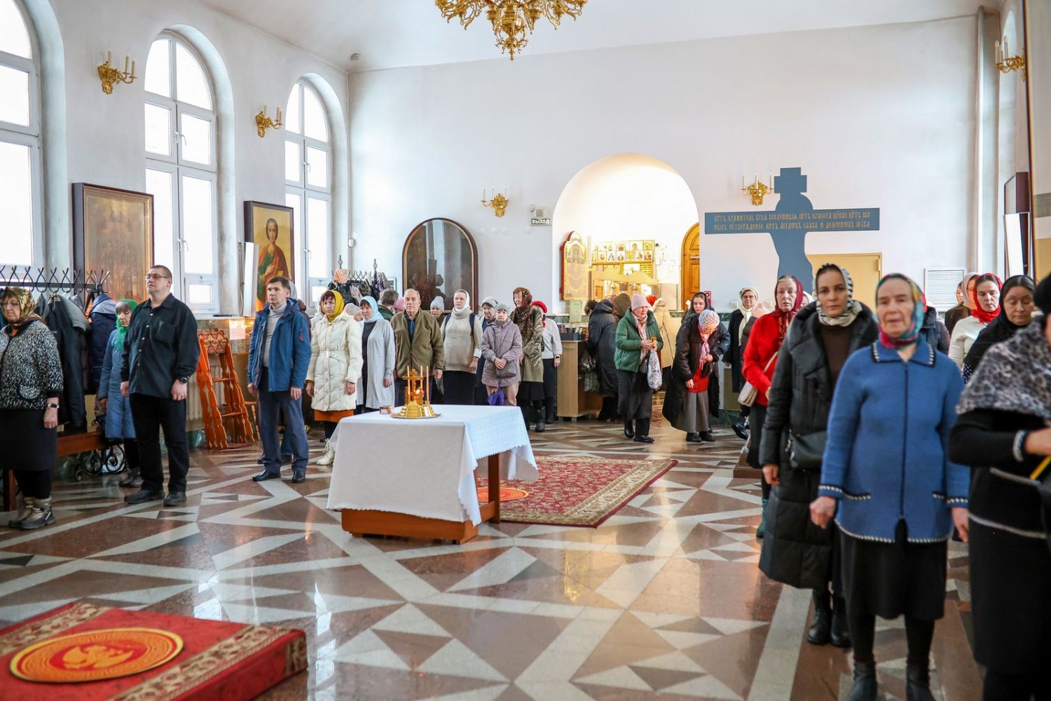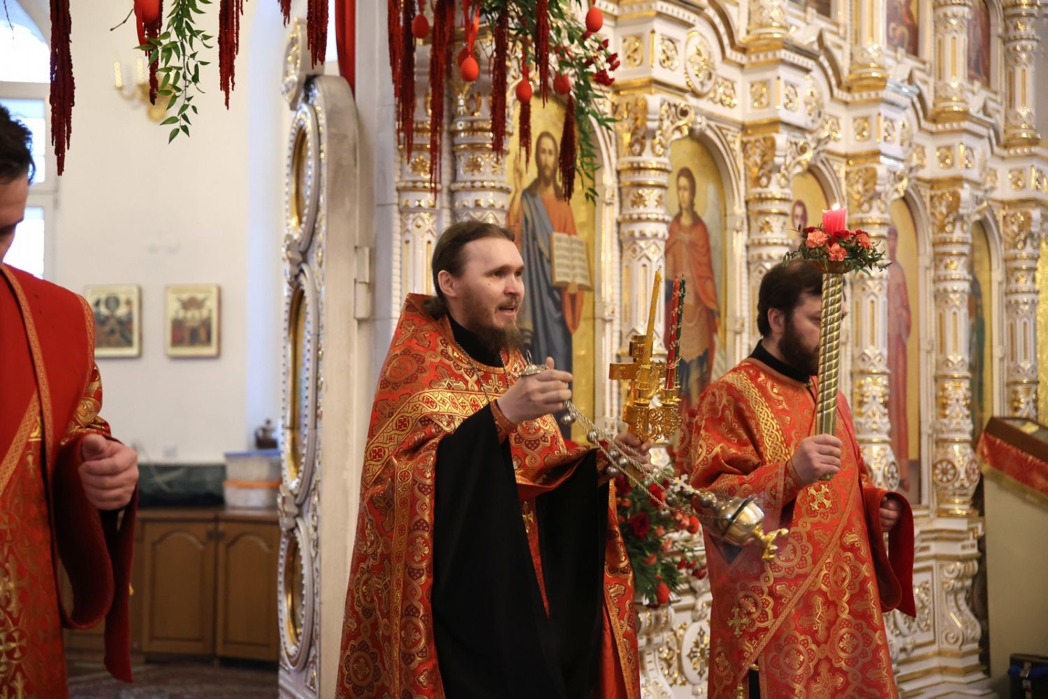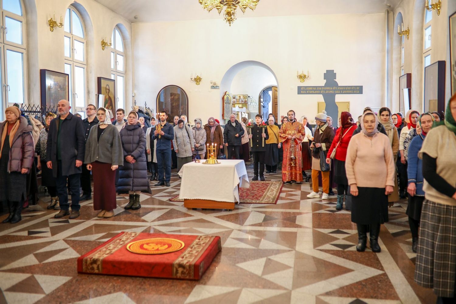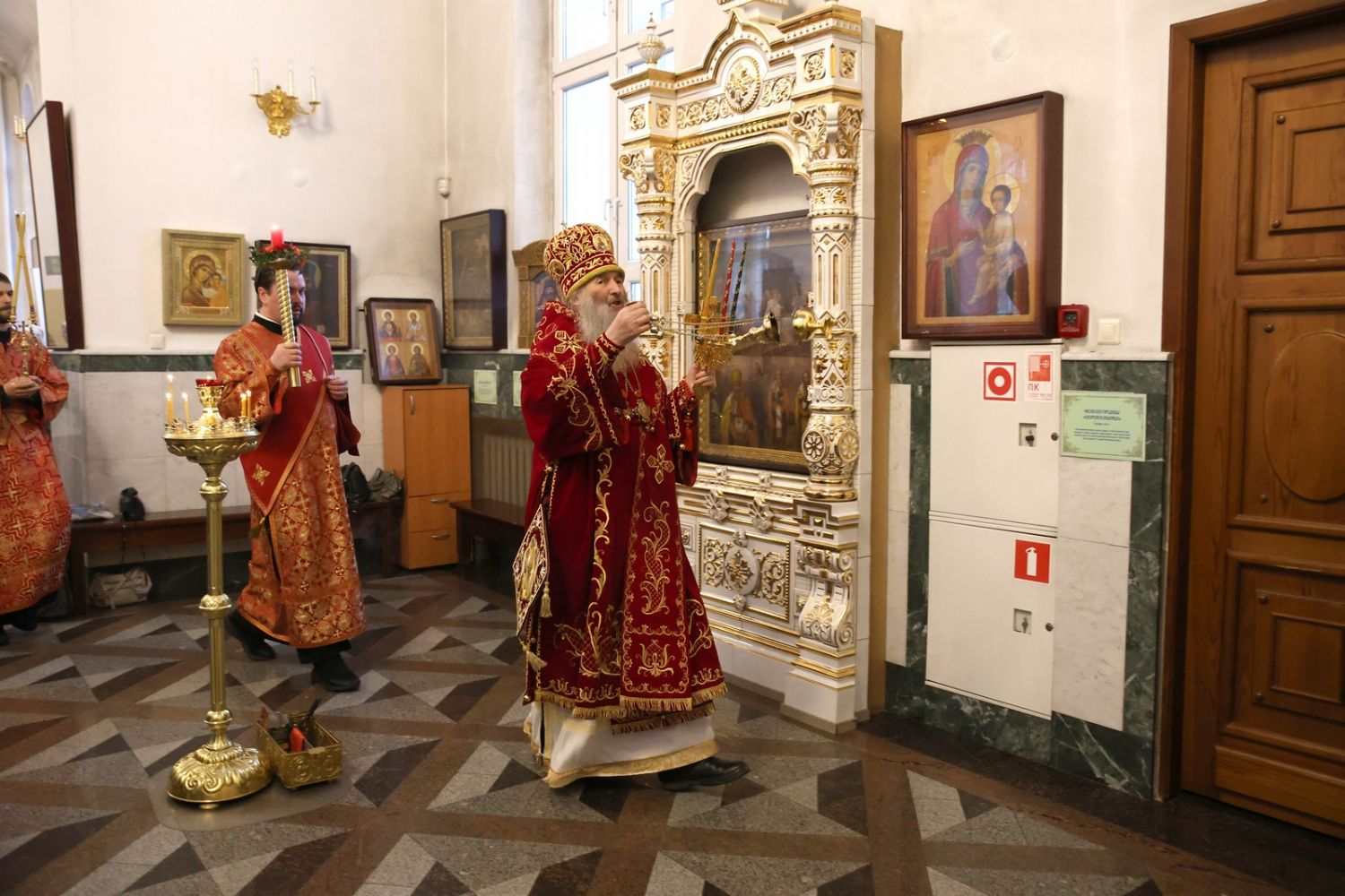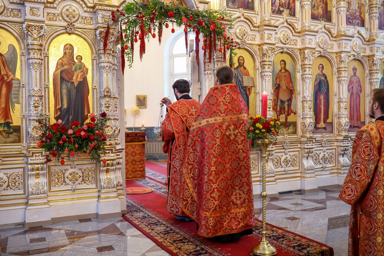 Архипастырю сослужили настоятель собора иерей Андрей Кочаков, клирики собора иерей Леонид Вылекжанин, иерей Димитрий Лукьянов и диакон Алексий Кузнецов, а также клирик Благовещенского кафедрального собора диакон Артемий Бобоч. Песнопения исполнял хор собора под управлением Алисы Вылегжаниной.