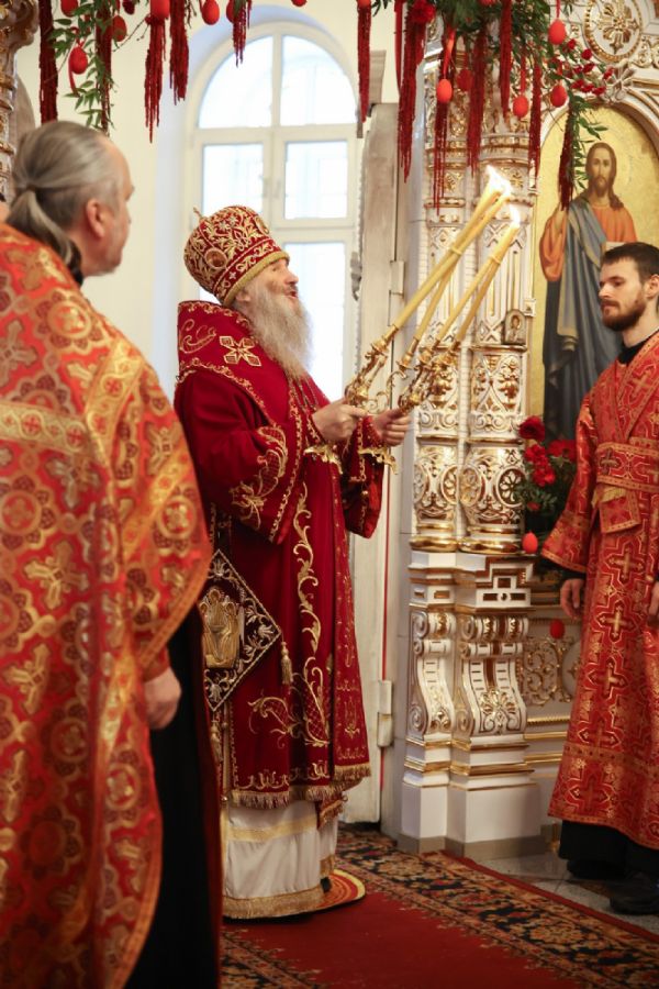 19 апреля вечером, накануне Радоницы, митрополит Йошкар-Олинский и Марийский Иоанн совершил пасхальную вечерню и утреню с поминовением усопших в Воскресенском соборе г. Йошкар-Олы.