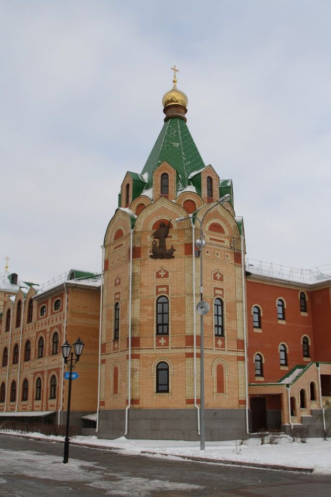 Обустройство храма в здании, где сосредоточена вся деятельность епархии было предусмотрено изначально. Здесь расположены отделы епархии, православный детский садик, воскресные школы, гуманитарные склады и реабилитационный центр «Добрые зернышки». Теперь сотрудники, воспитанники и их родители имеют возможность помолиться в своем храме.