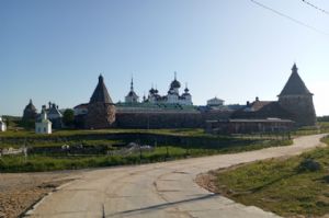 «Святитель Николай» подошел к Соловкам около 10 часов утра. Нашим взглядам, порядком утомившихся за три часа пути, предстали величественные крепостные стены и купола соборов монастыря. Прибытие катера на причале встречали представители паломнической службы монастыря. Попрощавшись с попутчиками, я направился к бабушке, у которой снял комнату. В последнее время найти хорошее и недорогое жилье на Соловках в летний сезон стало проблематично. Поэтому места в гостиницах и в частном секторе лучше бронировать заранее. Тогда шансы получить приемлемый по стоимости и месту расположения вариант для ночлега существенно выше. К примеру, я сам озаботился этим вопросом еще в марте. Заселившись в комнату с видом на монастырь, я поспешил в Свято-Троицкий собор обители.