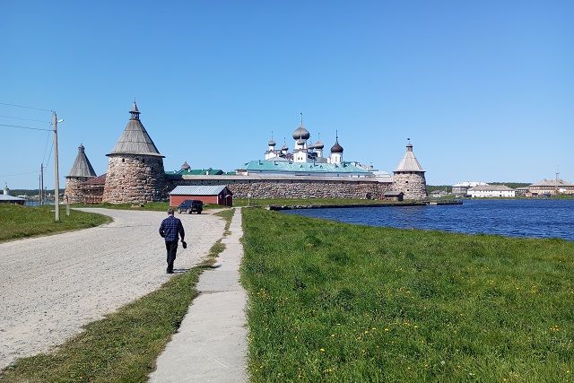 Над Белым морем – белая ночь. Стрелка моих наручных часов едва перевалила за полночь, а за окном светло как днем. Здесь, на севере, солнце не закатывается за горизонт в это время года – в конце июня. Я остановился на ночь на подворье Соловецкого монастыря в поселке Рабочеостровск, в 12 км от карельского города Кемь на побережье Белого моря. Его еще называют «воротами на Соловки», ведь именно отсюда от причала отходят катера на острова. Привлекло внимание это живописное место и знаменитого режиссера Павла Лунгина. Зимой 2006 года в Рабочеостровске он снимал получивший широкую известность фильм «Остров». Правда, избушка-декорация, долгие годы напоминающая о съемочном процессе, сгорела пару лет назад. Местные поговаривают, что был поджог. Теперь на месте, где она стояла, красуется памятный знак. Так для любителей фотографии появилась новая точка притяжения. В окно моей комнаты на подворье видны стоящие на причале катера, через несколько часов они повезут туристов и паломников на Соловки.