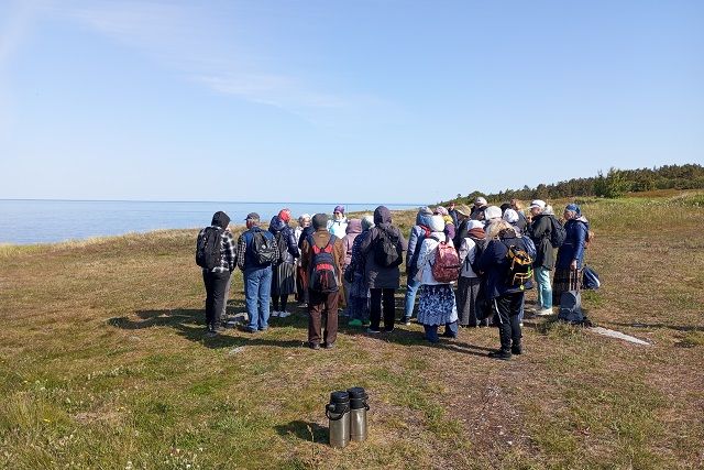Утром следующего дня я отправился на второй по величине остров архипелага – Анзер. Загрузившись в старенький пазик, вместе с другими паломниками еду на причал в Долгую губу. Автобус подбрасывало на каждой кочке, радовало то, что ехать нам предстояло всего четыре километра. Прибыв к месту отправления, рассаживаемся в маленький, принадлежавший монастырю, катер «Преподобный Сергий». Морской переход на Анзер занял два часа. Во время него я изумлялся красотам северной природы и Белого моря. На берег (мыс Кеньга) ввиду отсутствия причала высаживаемся с помощью моторной лодки. Тем временем, гид-экскурсовод делится интересными фактами об Анзере и проверяет рацию, по которой осуществляется связь с катером. Идти пешком нам предстоит десять километров через весь остров.