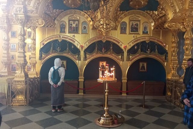 После посещения страшной и скорбной Секирной горы мы заехали в Ботанический сад на хуторе Горка. Его в 1822 году основал архимандрит Макарий. От действовавшего здесь воскобелильного завода теплая вода поступала по трубам в парники и оранжереи. В них монахи выращивали арбузы, дыни и персики. В настоящее время в Ботаническом саду растут несколько видов древесных, декоративных и лекарственных растений. Вернувшись в поселок, я поспешил через Святые ворота на вечернюю службу в собор. Народу скопилось много. Благочестивые паломники прикладывались к мощам и иконам. В церковную лавку выстроилась очередь, которой не было в первой половине дня. Все заказывали требы и приобретали свечи.