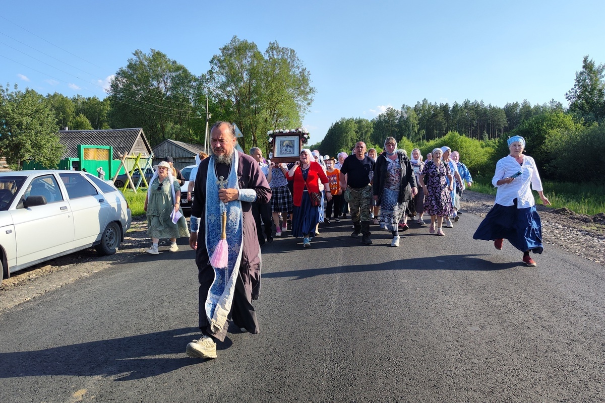 Крестный ход с Седмиезерной иконой Божией Матери и иконой Петра и Февронии Муромских прошел от Богоявленского храма посёлка Морки до деревни Фадейкино.