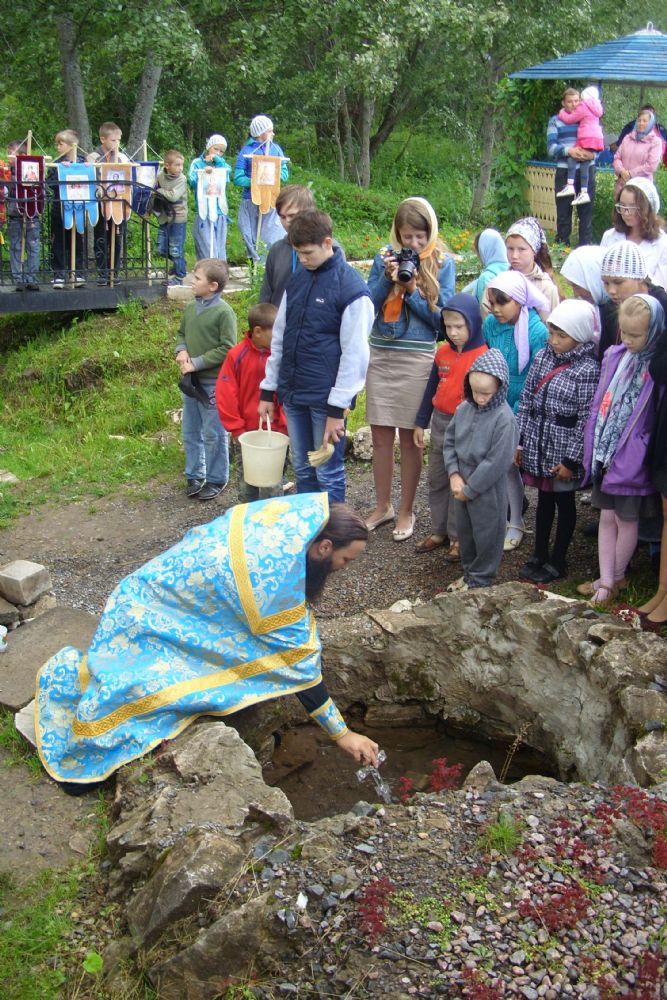По прибытии на святой источник отец Алексий отслужил водосвятный молебен и окропил всех святой водой. Дети и взрослые благоговейно прикладывались к Владимирской иконе Божией Матери, установленной здесь в столбовой часовне, и набирали воды из источника. Организаторы крестного хода выражают надежду, что на будущий год его участников будет не меньше, ожидается и прибытие йошкаролинцев.