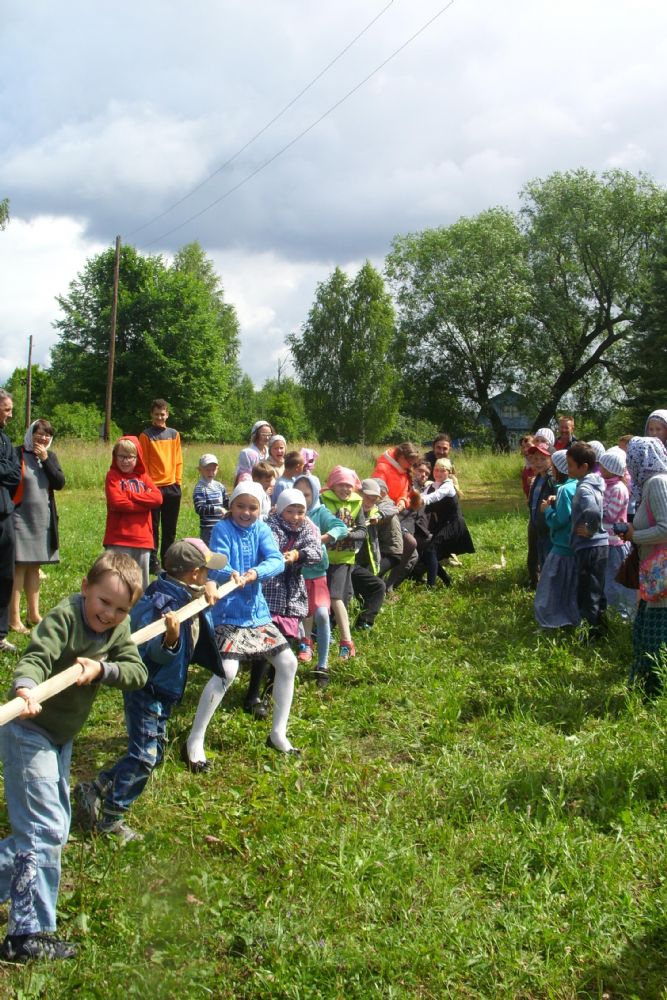 После богослужения в ожидании трапезы для ребят были организованы увлекательные состязания по перетягиванию каната.
