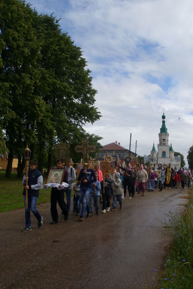 Во время трапезы хлынул дождь. Однако ко времени ее окончания, не иначе как по милости Божией, он перестал и юные участники крестного хода вместе со взрослыми двинулись в путь. Впереди шли дети с хоругвями, специально изготовленными для детского крестного хода, а виловатовцы привезли собственные.