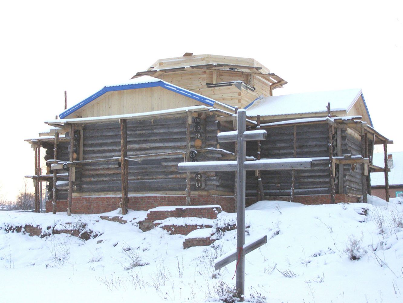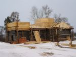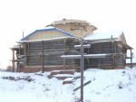 Около шести лет сруб сиротливо стоял. И только летом 2015 года стройка ожила. Зарегистрировали Свято-Покровский приход, возобновили строительные работы: подняли сруб, подвели под крышу. Но зимний период для кровельных работ время рискованное.
