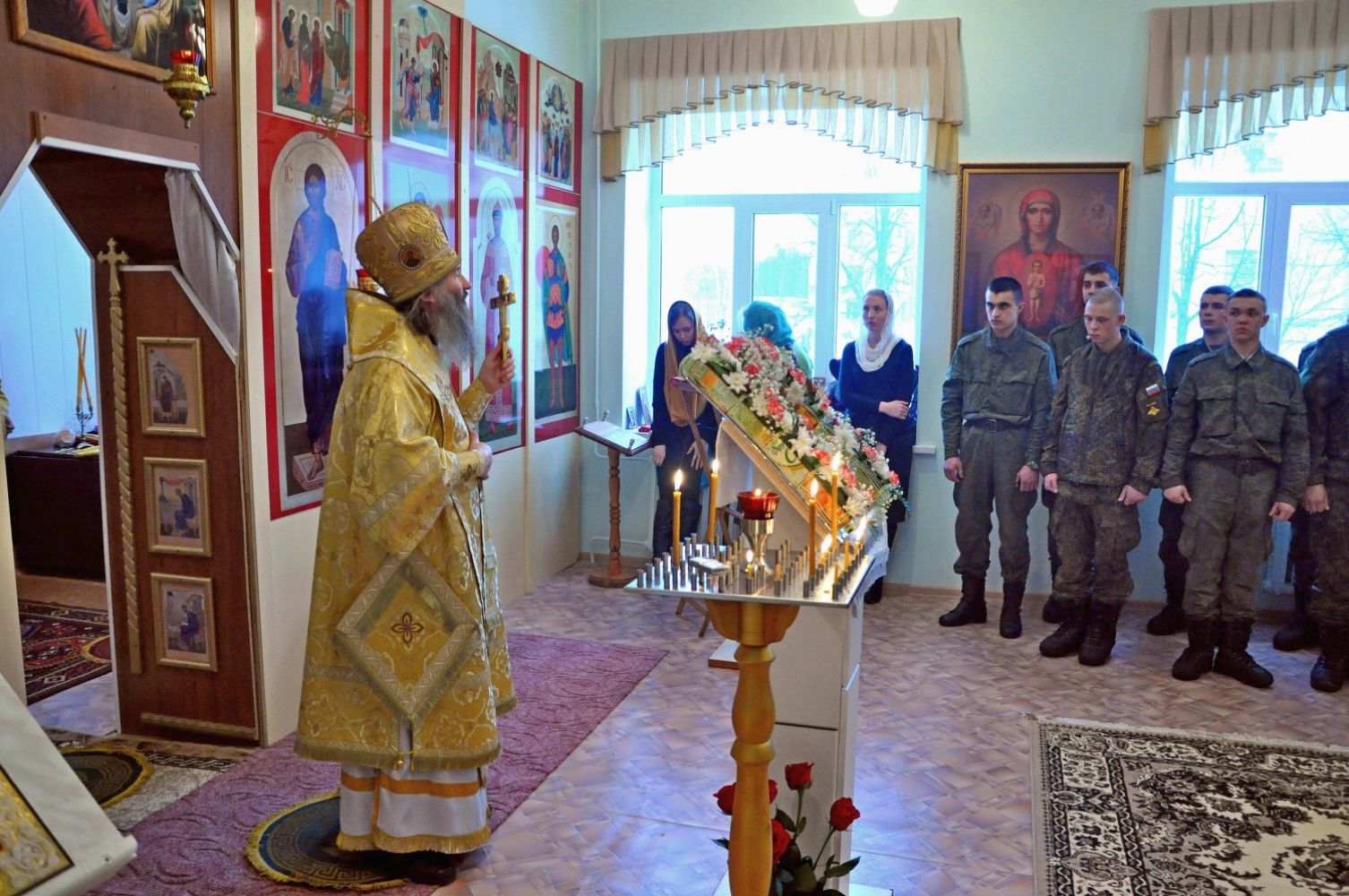 Почти все военнослужащие причастились Святых Тайн. Владыка по окончании богослужения всех поздравил с праздником в честь святителя Спиридона Тримифунтского и пожелал, чтобы Господь даровал всем воинам крепость, силу и мужество, оберегая святую Державу Российскую.