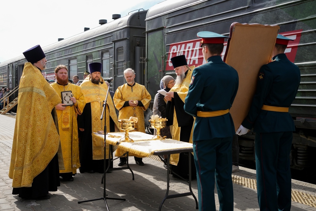 24 апреля в Йошкар-Олу прибыл уникальный поезд-музей Минобороны России «Сила в правде». По прибытии поезда на вокзале был отслужен молебен о Победе.