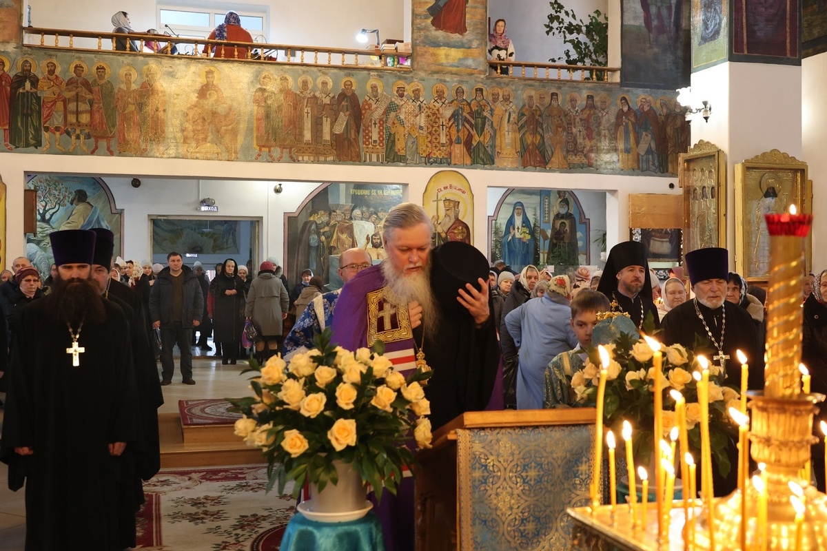 4 декабря, в праздник Введения во храм Пресвятой Богородицы, епископ Волжский и Сернурский Феофан совершил Божественную литургию, а накануне - всенощное бдение в Никольском соборе г. Волжска.