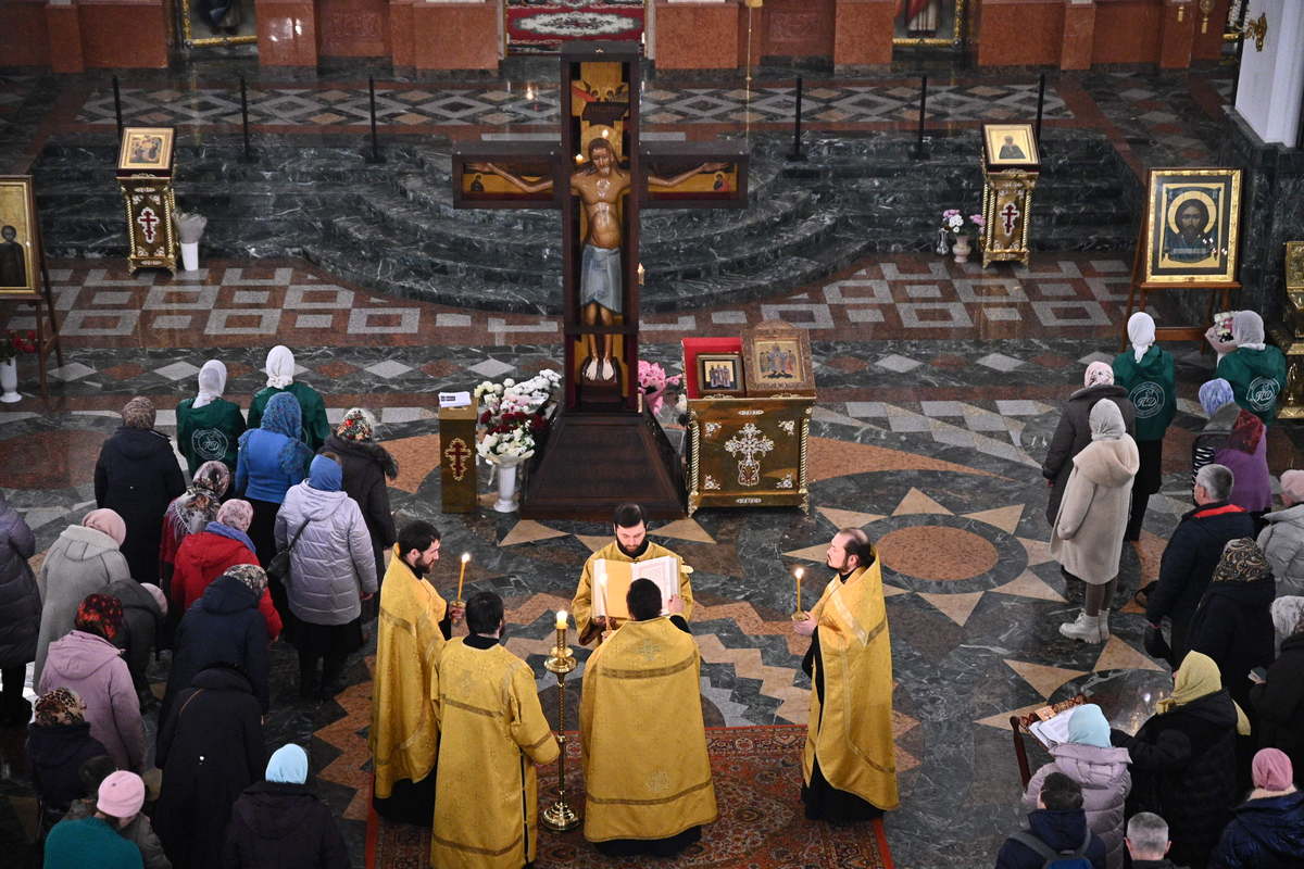 Вечером 26 ноября в Благовещенском соборе была совершена вечерня с акафистом Кресту Господню. По окончании богослужения святыня была отправлена из Йошкар-Олы.