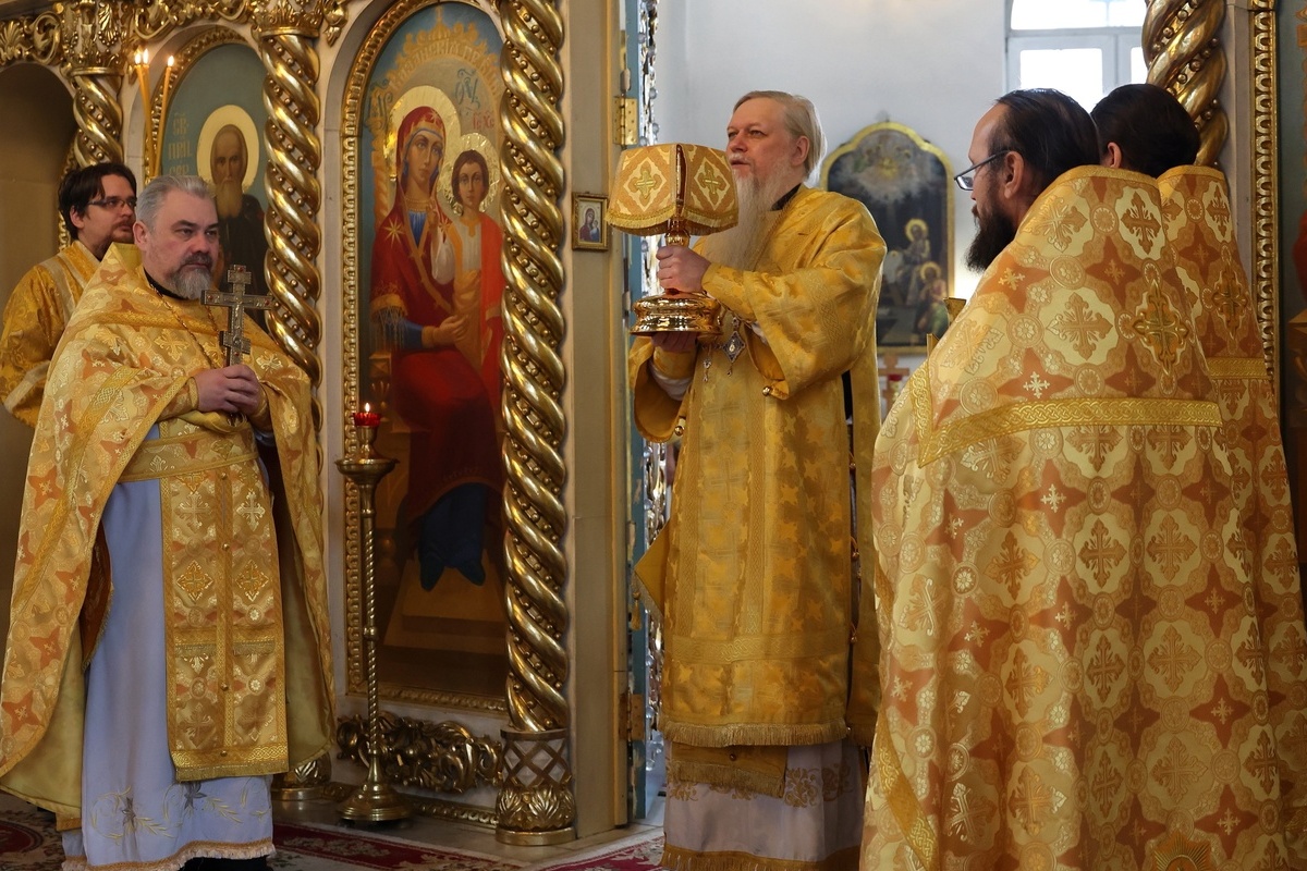12 ноября, в Неделю 23-ю по Пятидесятнице, епископ Волжский и Сернурский Феофан совершил Божественную литургию, а накануне вечером – всенощное бдение в Никольском кафедральном соборе г. Волжска.