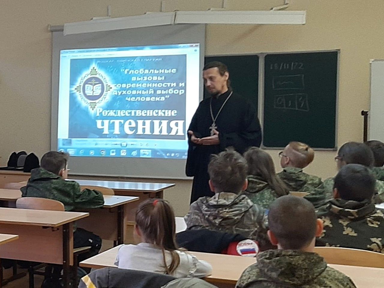19 ноября воспитанники Военно-патриотического клуба «Пластун» при Краснооктябрьской школе встретились с духовником ХКО «Хутор Царевококшайский» иереем Андреем Кочаковым.