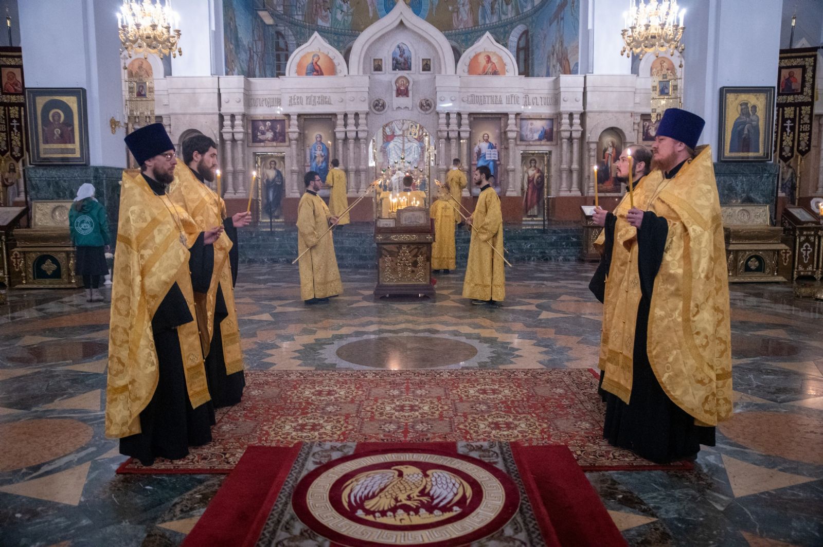 5 ноября вечером, накануне Недели 21-й по Пятидесятнице, праздника иконы Божией Матери «Всех скорбящих Радость», митрополит Йошкар-Олинский и Марийский Иоанн возглавил всенощное бдение в Благовещенском кафедральном соборе.