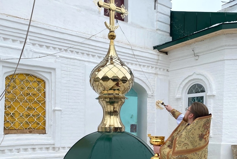 18 ноября после Литургии в Сретенском храме его настоятель иерей Артемий Промович совершил чин на водружение креста на купол воссозданного главного придела храма.