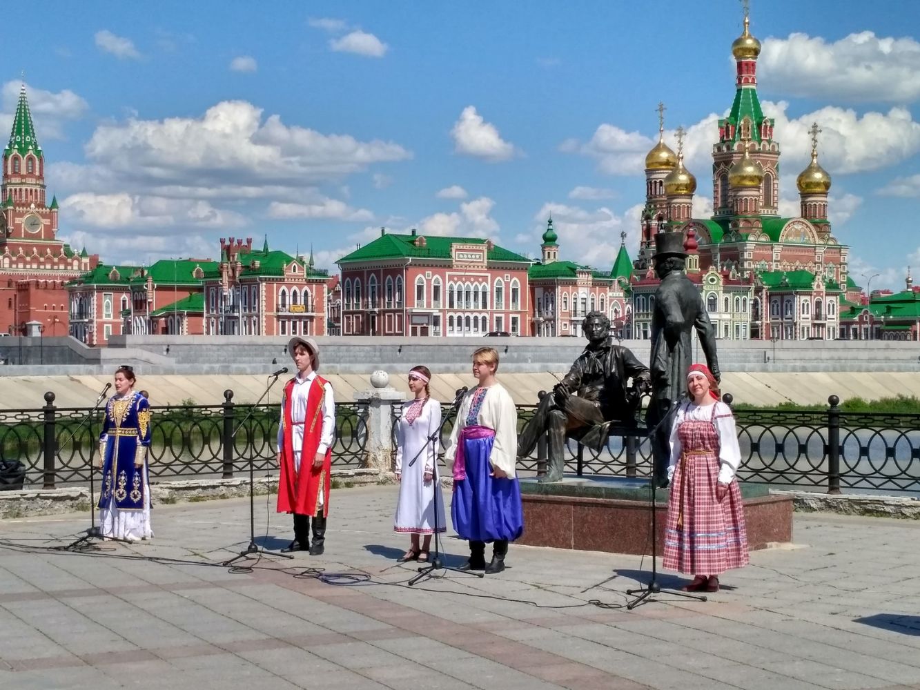 7 июня в Йошкар-Оле на набережной Кокшаги у скульптурной композиции «А.С. Пушкин и Евгений Онегин» состоялся литературно-музыкальный праздник «День русского языка».
