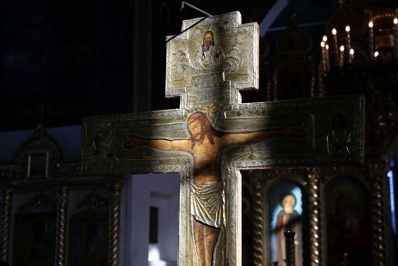 28 марта вечером митрополит Йошкар-Олинский и Марийский Иоанн совершил первую Пассию Великого поста в Вознесенском соборе Йошкар-Олы.